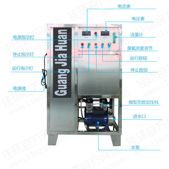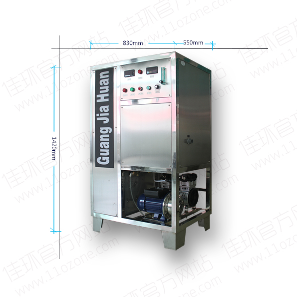 臭氧水量3-8T 型號:YT-016-S-30A 30克臭氧發(fā)生器水機(jī) 專利產(chǎn)品,此產(chǎn)品為廣州佳環(huán)電器科技有限公司獨家生產(chǎn),請認(rèn)準(zhǔn) 品牌(廣加環(huán)) 水機(jī)產(chǎn)品組成: 30G電源模塊 (1組) 30G脫羥石英管臭氧發(fā)生管 (1根) 空氣分離器分子篩(制氧單元) (1臺) 6L 微型內(nèi)置式無油空壓機(jī) (1組) 濾水系統(tǒng) (1組) 內(nèi)置 高密度冷凝器 (1組) 內(nèi)置 電流表 (1個) 數(shù)顯 電壓表 (1個) 數(shù)顯 濃度調(diào)節(jié) (1個) 電源指示燈 (1個) 停止指示燈 (1個) 運(yùn)行指示燈 (1個) 停止按鈕 (1個) 運(yùn)行按鈕 (1個) 風(fēng)扇 (2個) 臭氧水輸出口 (1個) 1寸 冷卻水進(jìn)口 (1個) 4分 冷卻水出口 (1個) 4分 流量計 (1個) 15L 電源保險 (1個) 水泵 (1個) 射流器 (1個) 1寸 防回水電磁閥 (1個) 消音器 (1個) 內(nèi)置 產(chǎn)品特點: 1、 水冷風(fēng)冷雙冷設(shè)計 水冷冷卻臭氧發(fā)生管 風(fēng)冷冷卻機(jī)器內(nèi)溫度冷卻水0.2-0.3T/H 2、 外殼為不銹鋼 3、 利用氧氣為氣源,經(jīng)過干燥過濾器,臭氧濃度提高 4、 臭氧量可調(diào)節(jié) 5、 氧氣純度:≥93% 6、 臭氧水濃度 1-2.5PPM (一般達(dá)到0.3-0.4ppm就達(dá)到消毒殺菌效果) 設(shè)備其他參數(shù) 整臺機(jī)尺寸:830*550*1420mm臭氧產(chǎn)量:30G/H 制氧機(jī):6L/min 輸入電壓:220V(50HZ) 重 量:≤85KG 規(guī) 格:箱式 混合方式:DN25(1寸) 射流器 PVDF材質(zhì) 增壓水泵:1.1KW 為了使用方便使用 220V/50HZ電源 馬力1.5HP 水流量 5T/H 揚(yáng)程30米 接入冷卻水口 4分水管 臭氧水輸出口 DN25 1寸 整臺臭氧水機(jī) 功 率:約 2650W 售后服務(wù):設(shè)備保修壹年,終身維護(hù),設(shè)備如出現(xiàn)故障,購方需要說明設(shè)備情況,廠方當(dāng)日回應(yīng) 關(guān)于物流